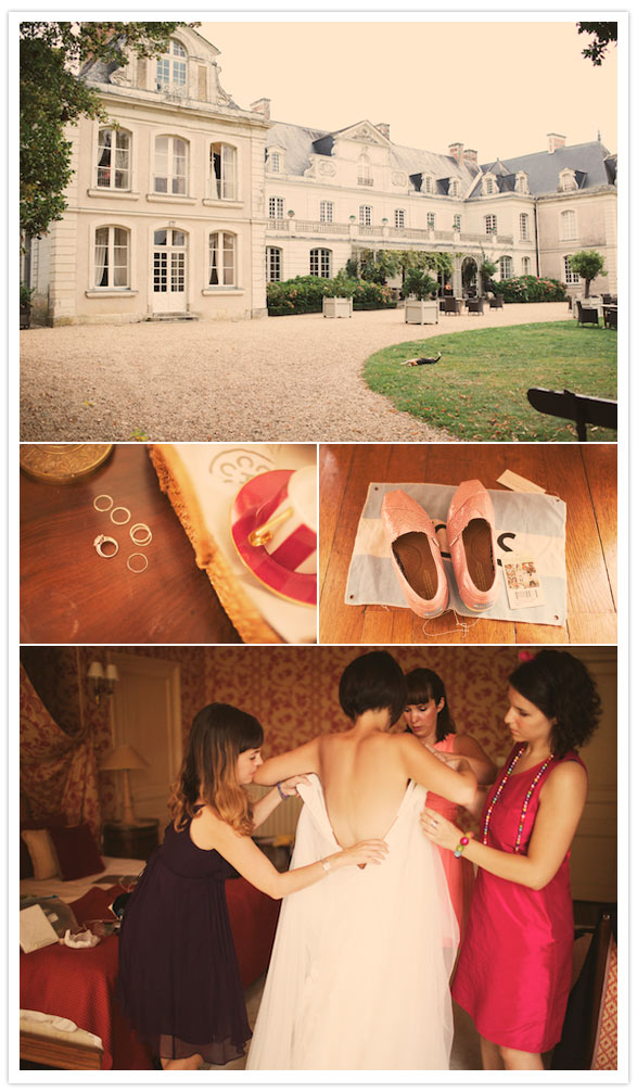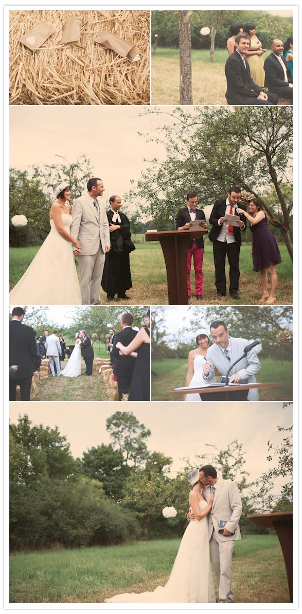 About a year ago, Monique + Fred revisited an old farm in Baracé, France, owned by Monique’s parents. It had been left in complete disrepair, until these two decided to get their friends & family’s help to renovate & landscape the space before their wedding. What happened as a result of the hard work, was a breathtaking celebration captured by Claire Eliza. This one has got us gasping, pinching ourselves, and wishing we could just pick up and move to France!