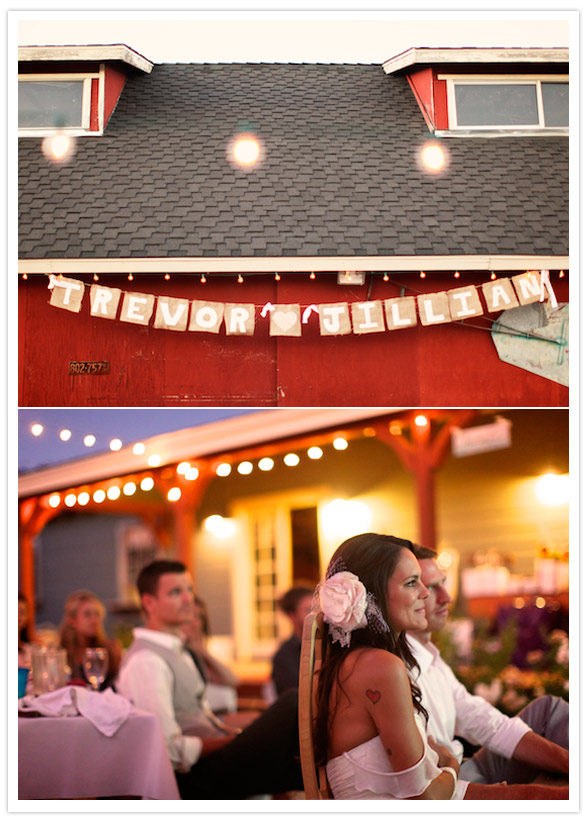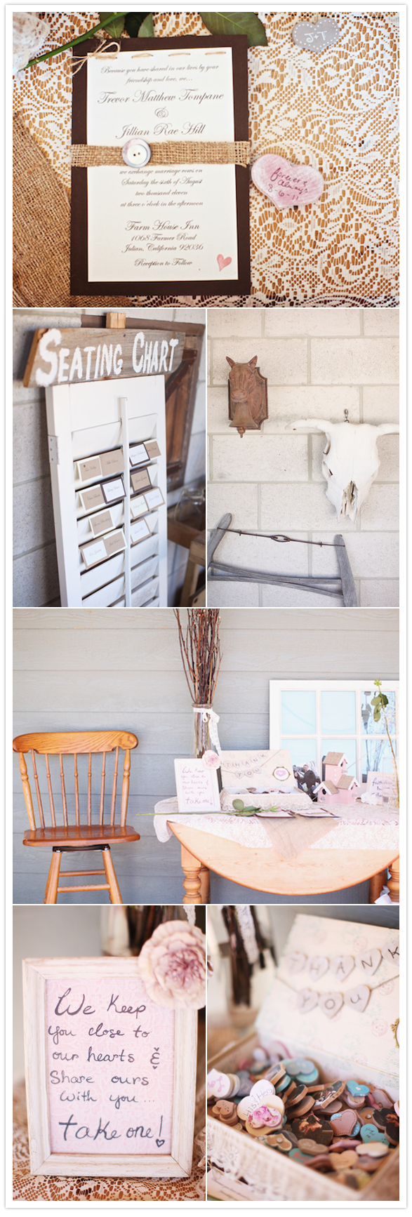 Planning your wedding on a small budget? Like less than 10k? No problemo. Just be prepared to fall in love with glue, paint, ribbon, and late nights. That’s a good thing. And, that’s exactly how our bride, Jillian was able to knock out a romantic country wedding for 160 guests with a budget of $7,000. Before we share some of her secrets, let’s get to know these two lovebirds. Trevor, well, he’s an avid surfer and smarty pants Boston Grad + UCLA Masters Grad, offering aid and relief in Africa, Chile, Panama, and Mexico (high-five!). Jillian on the other hand, gets sea sick just being on a surfboard, has no training in science, and has never been out of the country. She is though, one talented hair stylist, a Julia Child in the making, and a bona fide creative cookie. He’s got the brains, she’s got the creativity – it works!