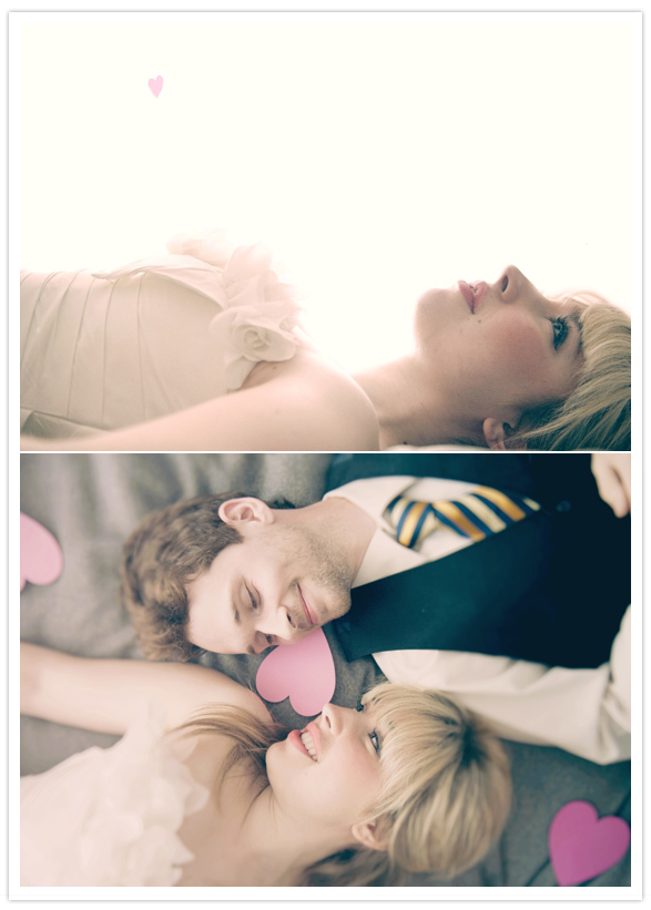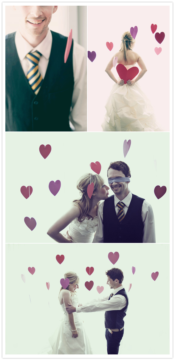 Their first look is crazy adorable. Warren had a tie wrapped around his eyes while he stood surrounded by hearts hung from the ceiling. Cydney sidled up to him and whispered that she had gotten bike grease from one of his (many) bikes on her dress that morning, at which point they started cracking up.