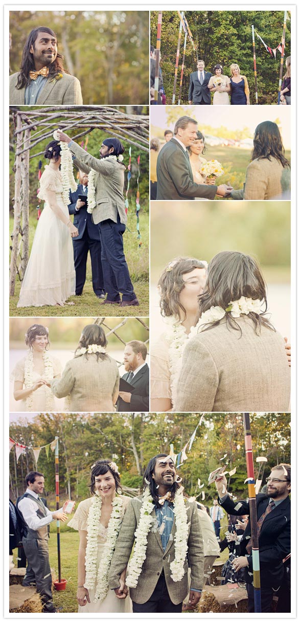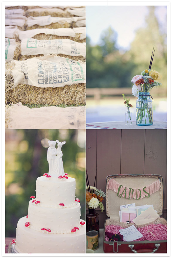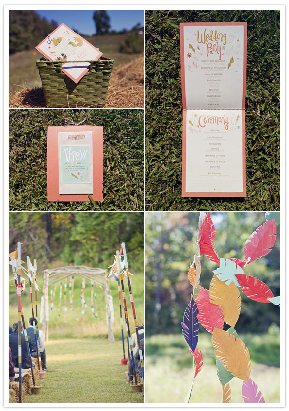 With hand drawn details and a hip vintage take on a Disney fairy tale, this wedding is the perfect way to keep us inspired despite having to return to work after a long weekend. We know we don’t know Lauren + Shil, but we know our lives would be a lot more fun if we did. He’s a radio publicist, and she’s an awesome illustrator (hence the charming illustrations you’ll see in their invitations, bridesmaid dresses, programs, activity book, and tote bag favors). She’s a Disney kid at heart with a Snow White-esque feel, who has always dreamt of a woodland creature themed wedding since she was a kid, complete with a forest and little animals. As luck would have it, Shil would be the guy that was just as into the idea as she was! Their wedding says it all!