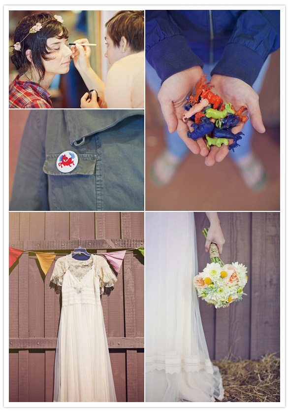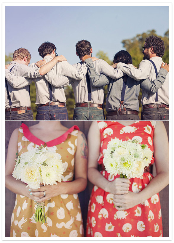 The most exciting project Lauren dabbled with was the bridesmaids’ dresses. She drew a fox and raccoon pattern and had the fabric printed via Spoonflower. Then wrote the lovely Whitney Deal to see if she’d collaborate on making a few dresses. Cute, yes?