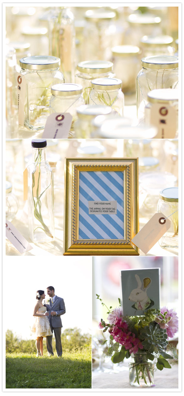 My unofficial theme was “fun for adults.” Instead of table numbers, we did table “animals”. The animal table cards were actually prints by Berkley Illustration and were a huge hit! For the favors, my friend Jake used to work at a nursery, so he ordered a bunch of air plants and we stuffed them in jars. Then we printed everyone’s name with a picture of their table animal,stuck them onto tiny tags, and tied them around the jars with baker’s twine. It took a REALLY long time and was sort of insane, but fun at the same time.