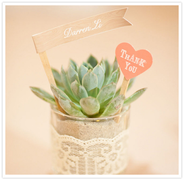 As part of their RSVPs, N + A asked guests to send in their favorite joke. They chose 10 favorites and placed one joke at each table setting on a little card in the shape of a “funny” bone. Perfect ice breaker!