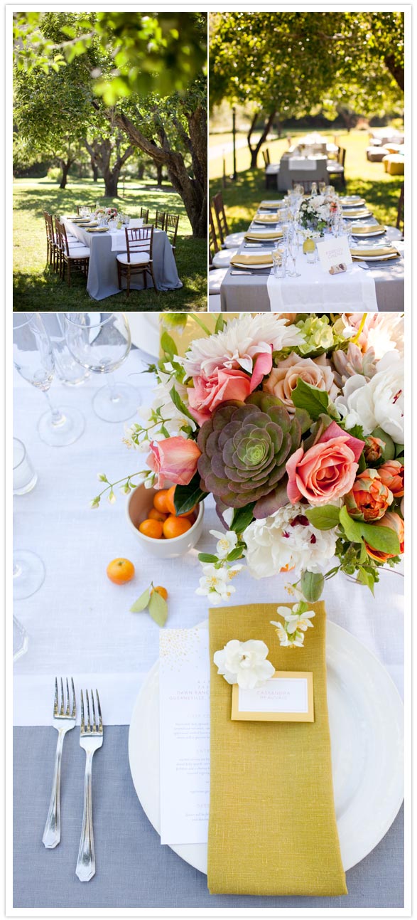 Photography: Jesse Leake Photography / Venue: Dawn Ranch Lodge / Planning + Design: Alyssa Brown of Alison Events / Flowers: La Fleuriste / Catering: Dawn Ranch / Photobooth: Magnolia Photo Booth Co. / Videographer: Thomas Hughes Films / Rentals: La Tavola Linens + Wine Country Party Rentals / Invitations: Petite Alma via Wedding Paper Divas / Day of paper goods: Hello! Lucky / DJ: Killer Miller / Ceremony, cocktail and dinner music: Coconut Hut Steel Drums / Hair + makeup: Yvette Beebee + Karen Chong Chan / Cupcakes: Sift / Brides dress: Vera Wang / Brides shoes: Rene Caovilla