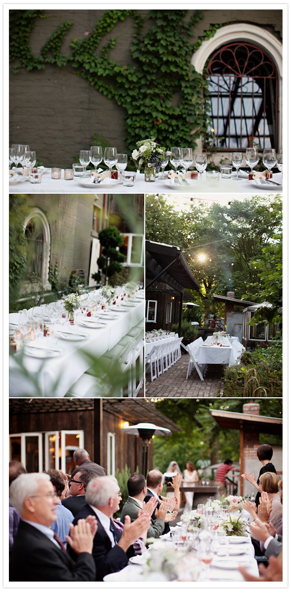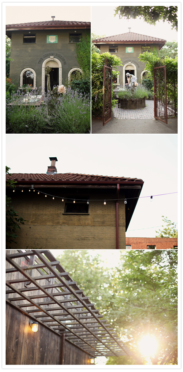 It has the old world charm of a European inn right in the center of Seattle. And it’s rustic down to the cracks in the walls and vine-covered brick, but has a lovely elegance when gussied up with beautiful flowers by McKenzie Powell and candles and beautiful people getting married.