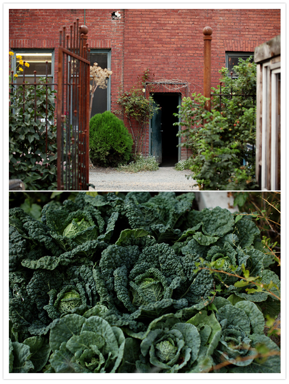 Rusty gates and beautiful little cabbages growing in the garden = two thumbs up if you ask us.