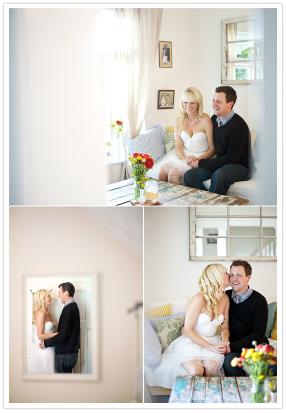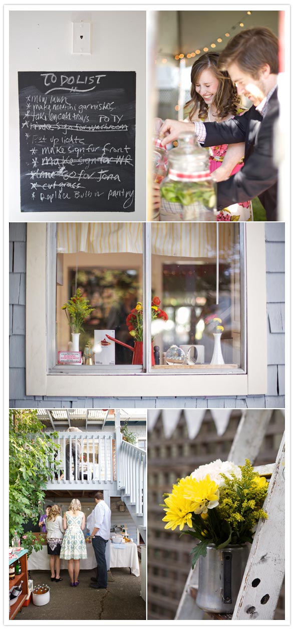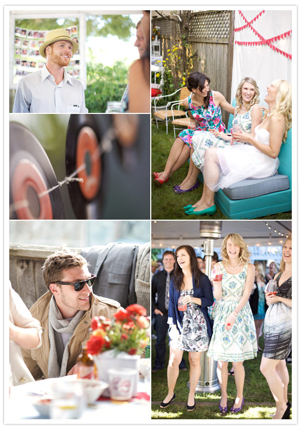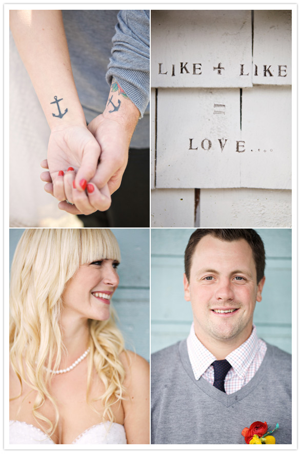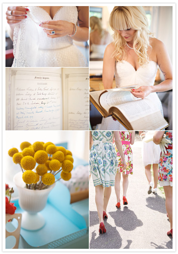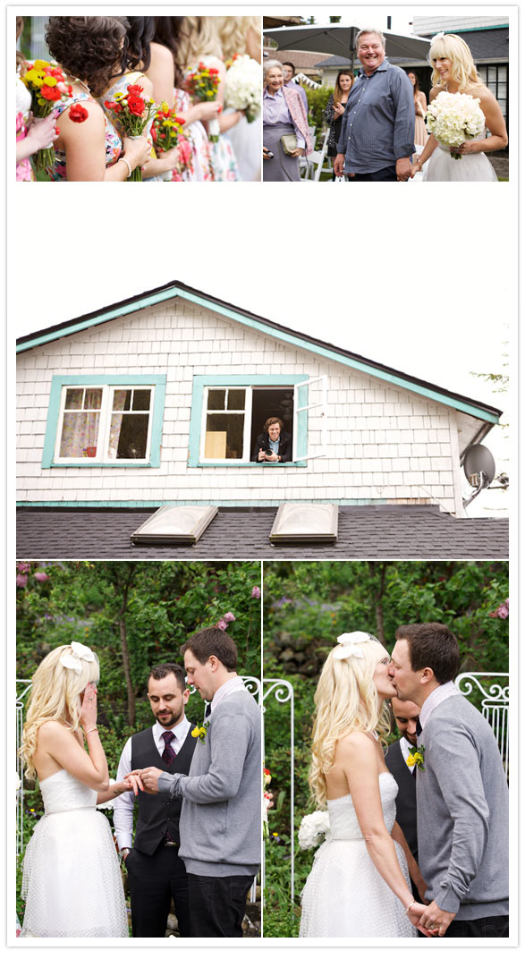 Photography: Gucio Photography/ Videography: Shayne Geddes / Event planning: Petite Pearl Events / Catering: La Taqueria / Officiant: Darian of Young Hip and Married / Bride’s dress: Sarah Seven / Shoes: vintage / Veil: handmade by Bride / Bridesmaid dresses: vintage / Hair: Studio 2291 / Makeup: Makeup Artistry by Denise / Groom’s apparel: shirts – American Apparel, pants – Levi’s, shoes – Vans
