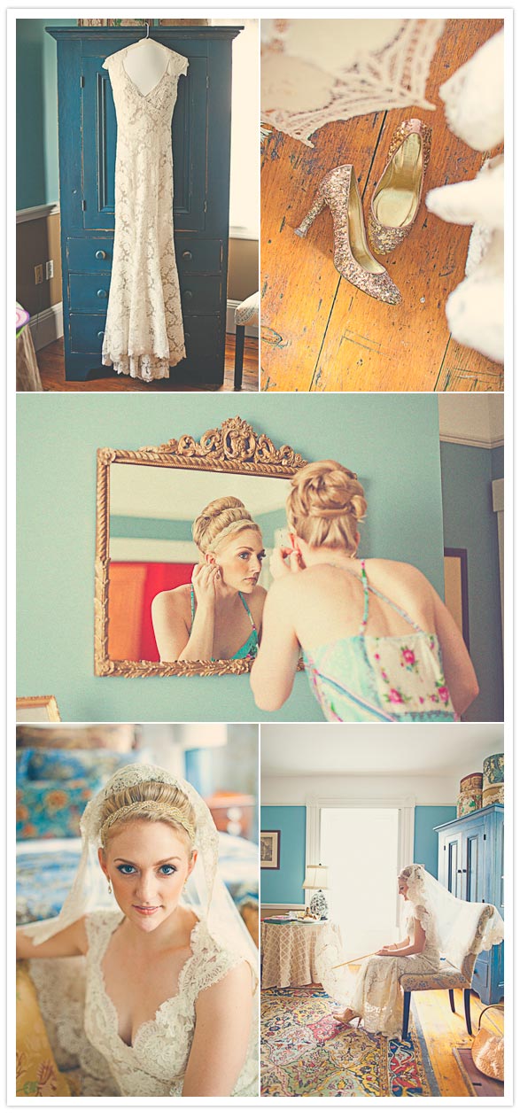 I purchased my gown on ebay for over 75% off the retail price from a bride who had worn it to her wedding (no, it wasn’t a knock off!) which I ended up loving because it had a particular smell of someones home on it, which I shared with her and will always associate that smell with my dress and wedding. I ended up finding my veil at a local antique store for only $25.00 and it matched my gown exactly.