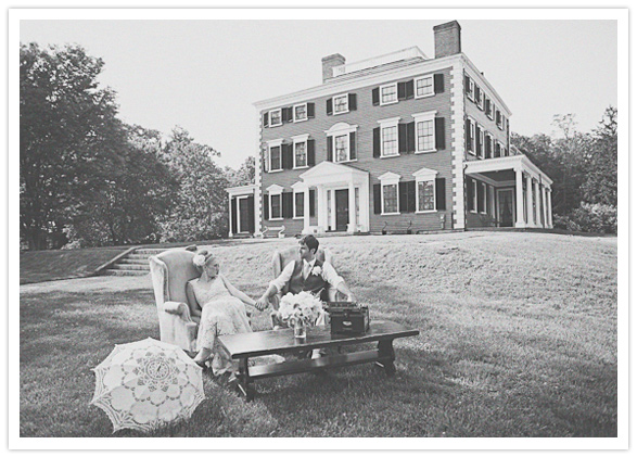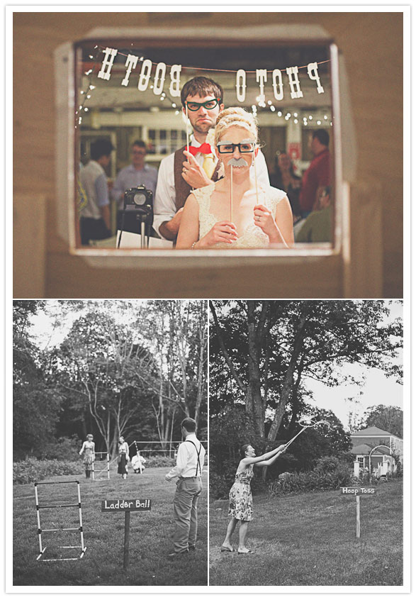 Since the guest list was small and everyone would be traveling, we planned a friday morning garden ceremony at our favorite historic estate, followed by an afternoon tea party in the meadow nearby filled with lawn games, a harpist, a silhouette artist (in lieu of a traditional guestbook) and lots of laughter. We also wanted the opportunity to spend more time with our guests who had traveled far for our wedding so we decided to host a barn party on the evening of our wedding day at a neighboring community farm complete with homemade beer, an English country band, a photo booth and barbeque.