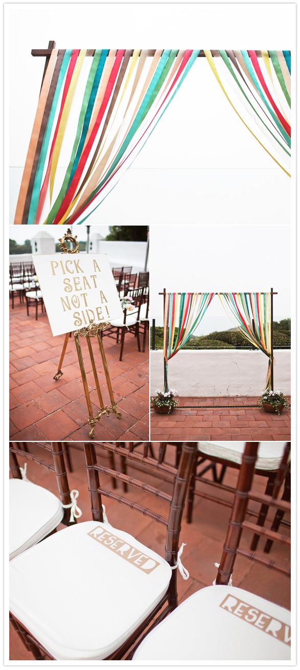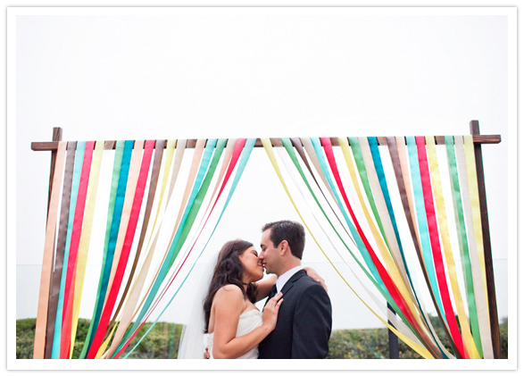 Bryan built the arch they married under and Silvia added her touch by hanging bright ribbon from it.