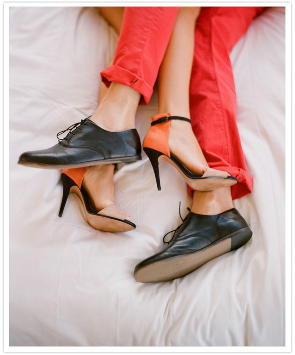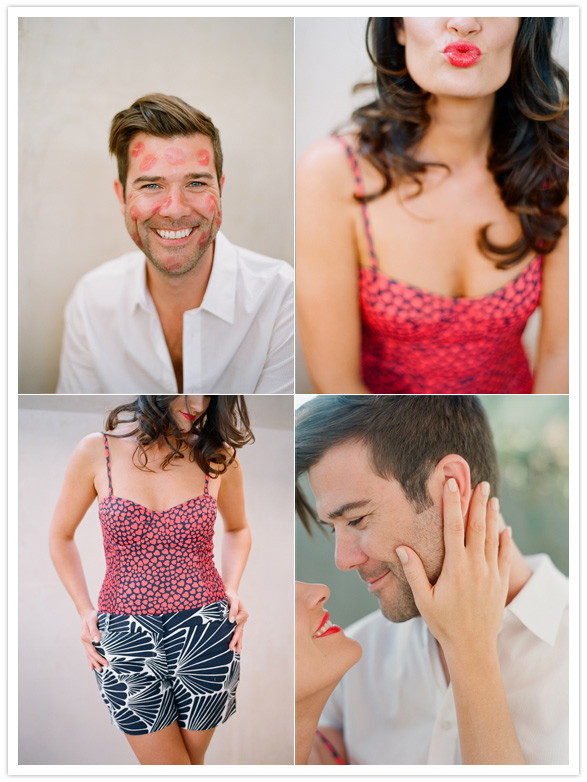 Photography: Elizabeth Messina / Styling: Amanda of 100 Layer Cake, with assistance from Catherine of The Life Styled / Hair and makeup: Fiore Beauty / Location: Hotel Lautner / Engagement ring: Philip Press / White dress: Halston Heritage. Black and white zebra dress: Kate Spade, and earrings all c/o Rent the Runway. Red, navy and white striped dress: Trina Turk. Orange heels: Zara. Heart swimsuit: Jcrew