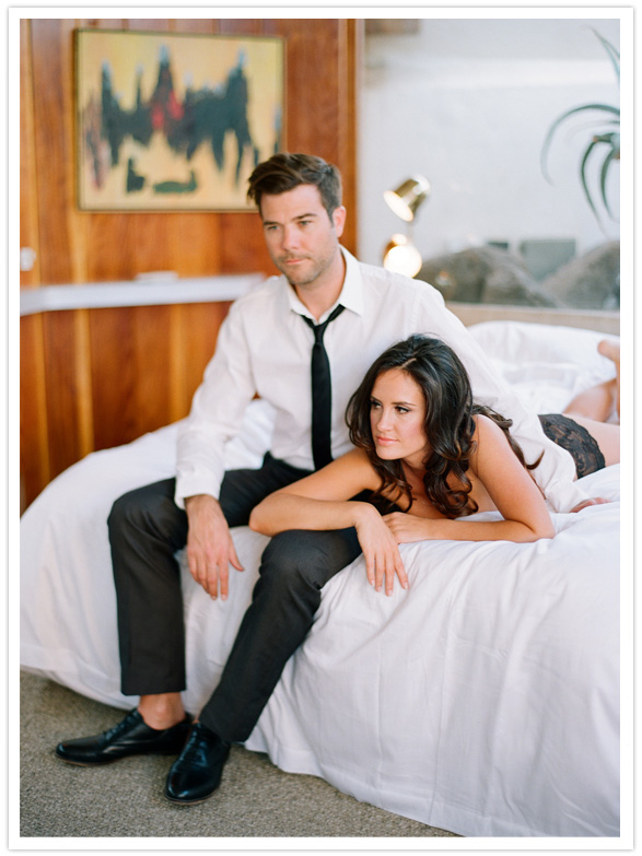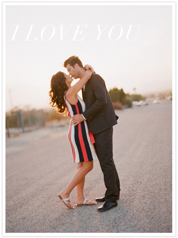Top o’ the morning to you, everyone! So very excited for today’s post. I finally get to share Tim and I’s engagement photos with yous. We took a little trip out to the desert awhile back with Elizabeth Messina for a spiffy photo shoot at Hotel Lautner, an amazing mid-century hotel in Desert Hot Springs. We wanted to have some fun with this shoot and do a more editorial-style approach. I think Elizabeth captured us perfectly.