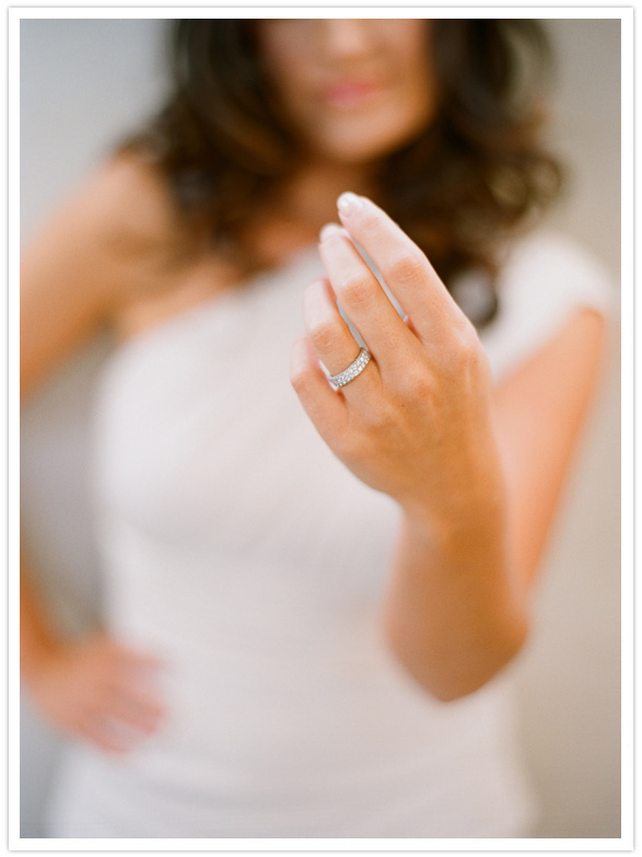 Fiore Beauty did wonders with my hair and makeup. They are good, those girls. Many of you had asked about my engagement ring. We had this one custom-made by Philip Press in Los Angeles. I always knew I wanted a modern styled ring, and I love how it turned out…a 3-sided eternity band with pave-set diamonds. It is so sparkly!