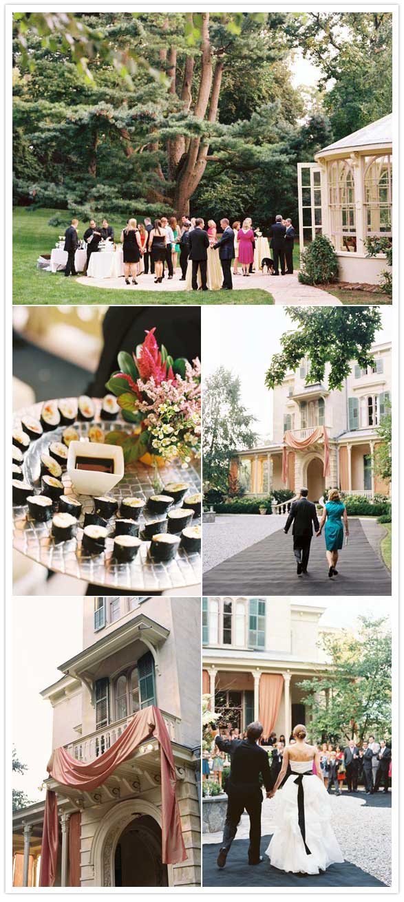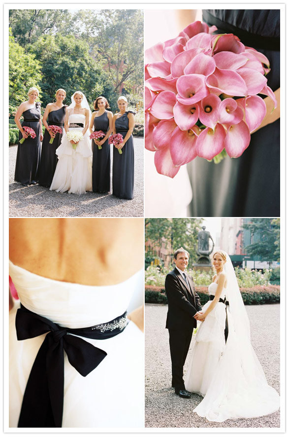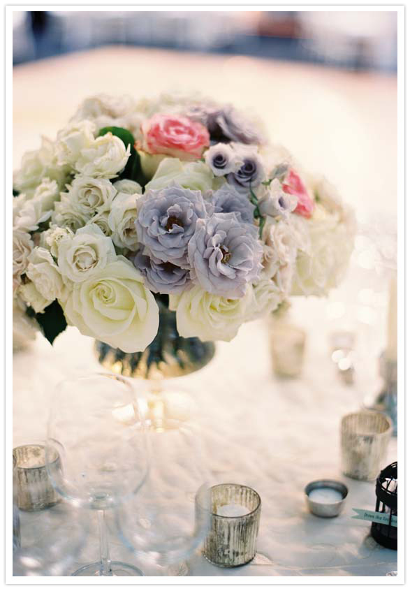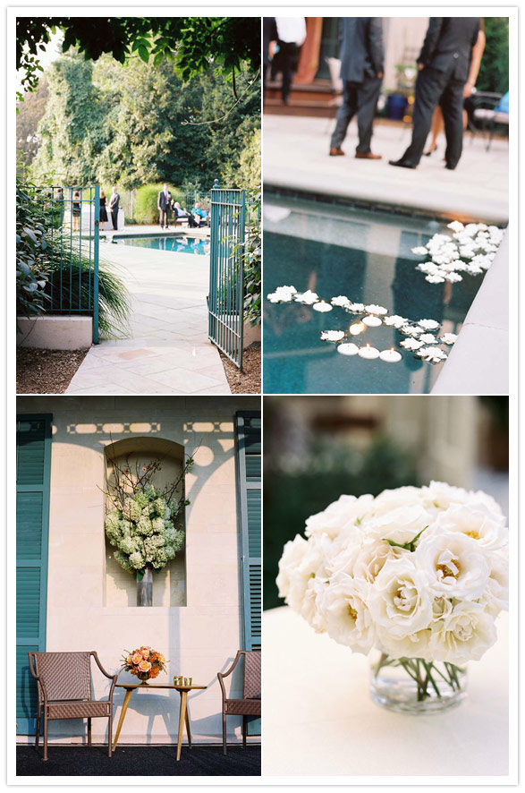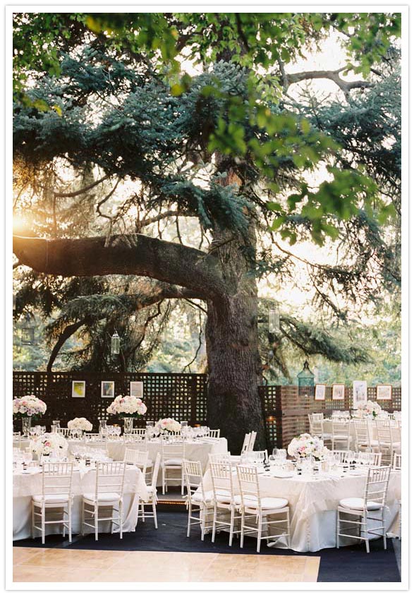 Birdcages hung from trees, lavender, pink and vanilla roses, walking up to your reception on a black carpet, floating candles in a pool, Vera Wang, chandeliers above the dance floor, and timeless photos captured by Charlotte Jenks Lewis. Sounds glamorous and romantic. It reminds us how pretty black & white weddings can be when they’re taken out of the ballroom and placed in an intimate setting. Like Tara + Martin’s amazing backyard, where guests could feel like they were wining and dining in a magical tree house.