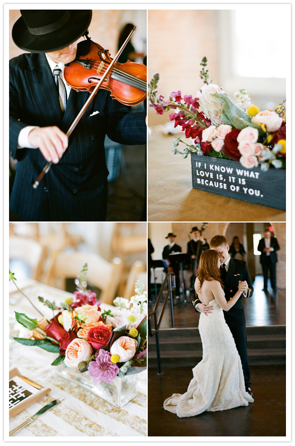 Photography: Ryan Ray Photography / Venue: The Filter Building / Catering + rentals: Culinary Art Catering / Flowers: Lindy Floral / Invitations: designed by bride, printed by Corinna Beau and painting backing from Michelle Armas / Cake: Layered Bake Shop / Jazz Band: The Texas Gypsies / Bride’s dress: Ulla Maija Couture / Earrings: Kendra Scott Jewelry / Shoes: Badgley Miscka (“Kiss Kiss”) / Groom’s suit: J.Crew Ludlow, uniform: c/o the U.S. Navy