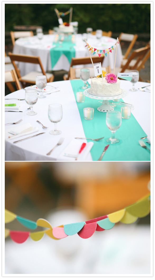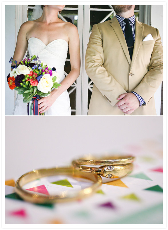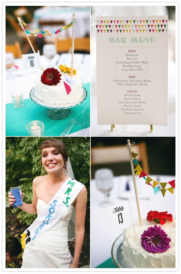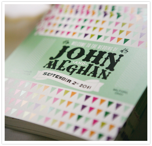Let’s end the week with a bright and colorful wedding with some phenomenally fun paper goods, yes? If you couldn’t tell from our post yesterday, we kinda get giddy when it comes to pretty paper. So when Meghan sent us a link to her site and told us that both her and John designed their wedding invitations, we pretty much wanted to squeeze them. First off, they’re an adorable couple. Second, they’re both graphic designers who met in New York while working together at a small design firm. Too cute! And their wedding is the perfect reflection of that, rock candy favors and all!