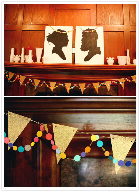 A nice little spin on the good old bunting with gold glitter flags and colorful dots, don’t you think?