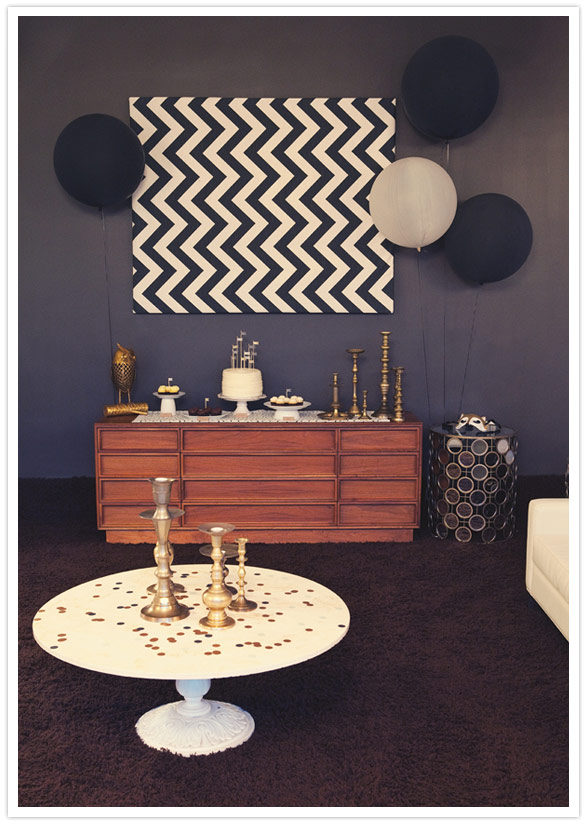 There are but a handful of birthdays that should most definitely be accompanied by epic parties. One of them being your 30th! Lucky for us, Sarah Sherman Samuel of Smitten Studio did exactly that – threw an epic party of Palm Springs and Alice in Wonderland proportions at one of our fav estates, Casa Verona. While the invitation set the stage for a monochromatic color scheme for guests to arrive in black & white, the birthday girl stood out, donning an adorable gold sequins little number.