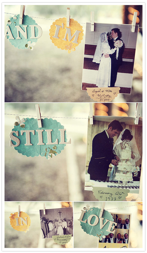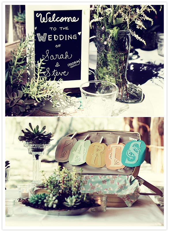 Some lasting DIY wise words from Sarah: I held a few weekly craft nights where my sisters and girlfriends would come over and drink wine and help me tackle every project on my list. We made banners and flags, napkin ring placecards, paper fans that acted as programs – even hairpins for the bridesmaids! Every DIY bride needs help! I was incredibly fortunate to have a crafting army to back me up every step of the way! I even had help from far away – my mom made patchwork mats for the centerpieces in Florida, my youngest sister made little mustaches for beer bottles and wine glasses in her college apartment and out in Santa Cruz, my friend Amy made little fabric hankies for the ceremony! Steve jumped in anytime he saw an opportunity to make something I had my eye on that wasn’t in the budget – from that incredible photo booth to a chandelier made of mason jars. That’s amore!