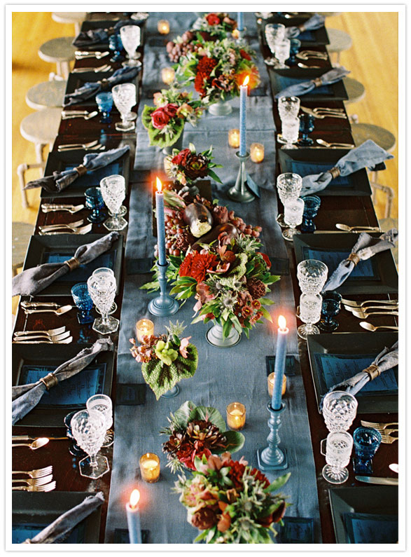 For those of you planning your fall 2012 or spring 2013 weddings, this bit of inspiration pairs perfectly with the dark Vera Wang gowns from her current collection. Yum!