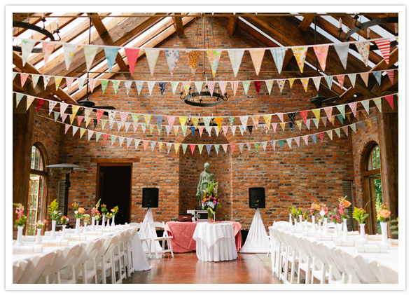 In determining what I could do myself, I felt that I had to be careful how much I added, because simplicity would let the beauty of the gardens around us really come front-and-center. In the end, I chose bunting made out of vintage bedsheets as the sole DIY decoration. Some of the sheet patterns were ways to acknowledge those no longer with us– the patterns I knew from my father’s house and the musty closet at Nana and Poppop’s.