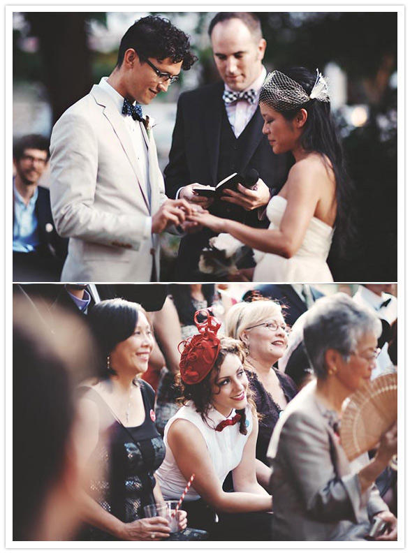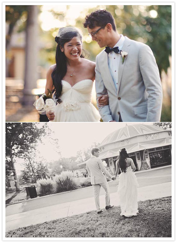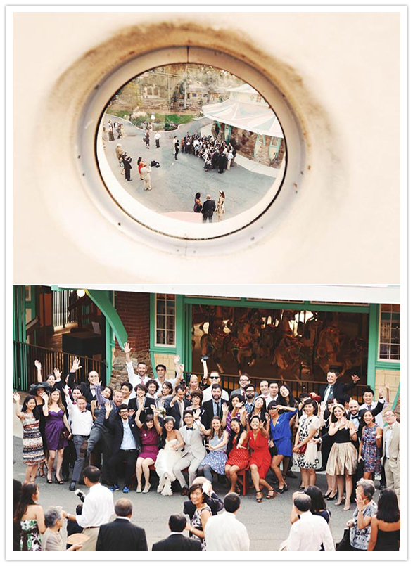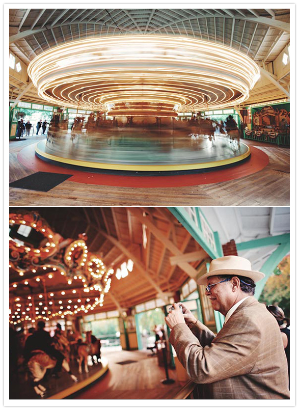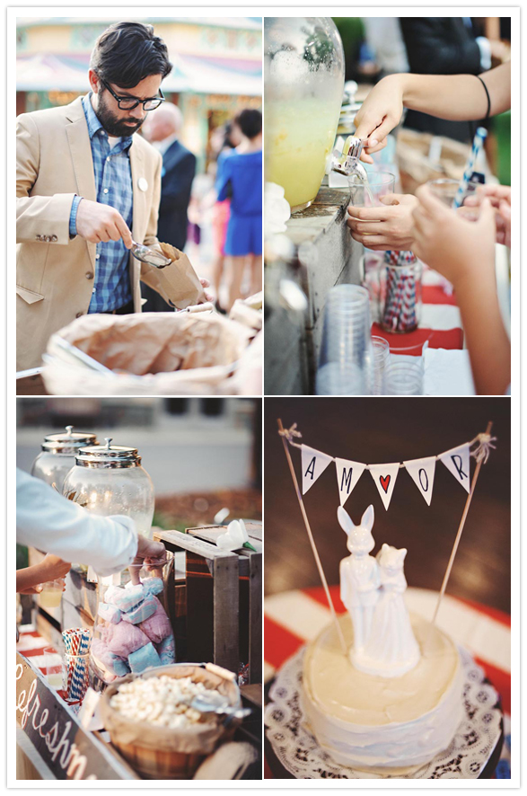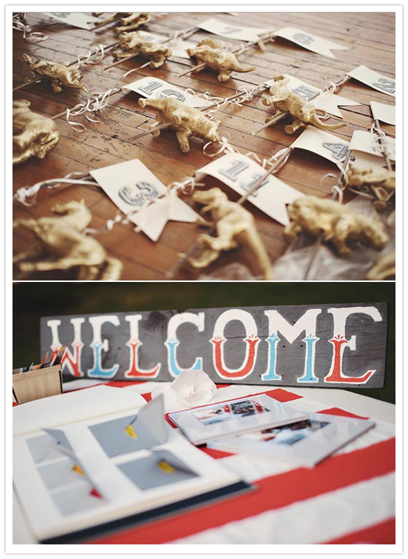 Photography: Sam Hurd Photography / Location: Glen Echo Park / Catering: Windows Catering / Ice cream sandwiches: Melt Bakery / Cake: Top of the Apple / Hairpiece + bouquet: handmade by bride / Jewelry: vintage + Minoux Jewelry / Paper decor: Bulk Party Supplies / Wooden signs: handmade from scrap wood / Gold plastic animal centerpieces: flea markets / Table cloths: handmade / Bride’s dress: Sarah Seven / Groom’s suit: J.Crew / Shoes: Rachel Comey / Invitations: designed by bride + groom