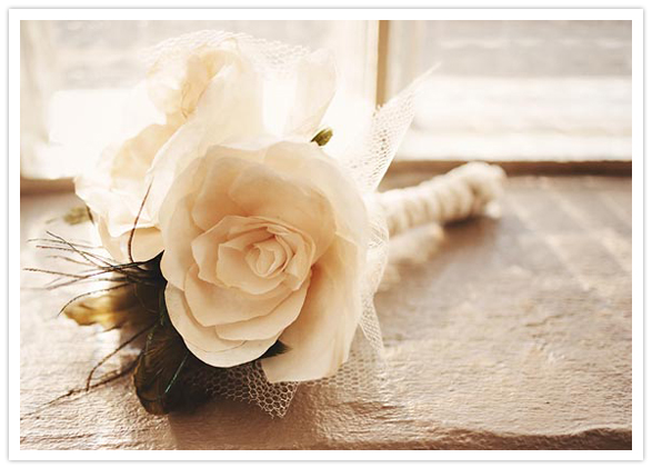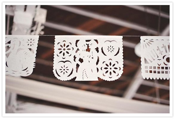 Because of budget constraints they had their flowers double as a decoration piece and a keepsake for each guest. They handmade paper flowers out of coffee filters and watercolored them to match their color scheme. Check out how they made them here.
