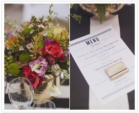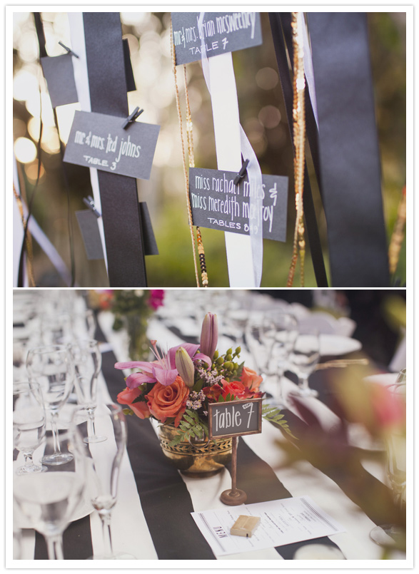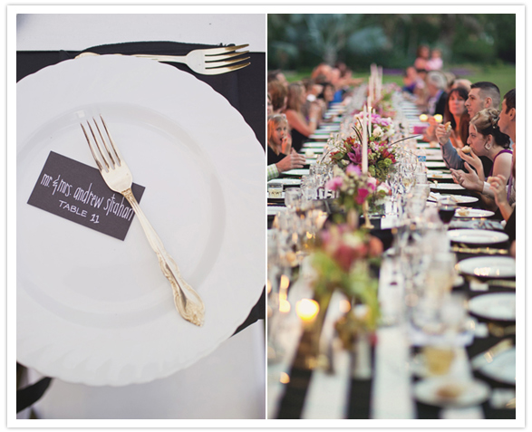 Brooke is a lady with an obsession for black, white, pink and gold. Kinda sounds like us! Interiors, fashion, florals – she just can’t get enough. That’s why they became the central colors in her wedding. Working those colors in with other poppy bright colors (oranges, reds and corals), she wanted to make sure the rest of the design balanced vintage, modern and glam elements to create an unforgettable look. She rocked it (and that Jenny Packham dress!).