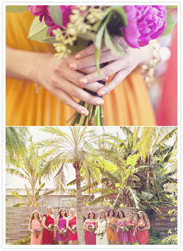 As for the bridal party, I let all of the bridesmaids choose their own dresses with the only “rule” being that their dresses were some shade of red, pink, coral or orange. I wanted everyone to be comfortable and LOVE their dress (and hopefully wear it more than once!).