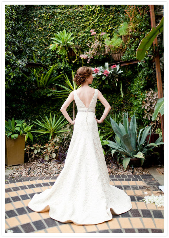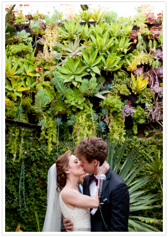 With it’s vertical garden oasis, re-salvaged rustic tables, and exposed brick walls, The Marvimon House in Los Angeles added quite the awesome factor to Allison + Lowell’s wedding. But then what Brown Paper Design did with the florals (um, check out those hanging planters) just transformed the room. And, aside from their initials being L + A, these two really are in love with everything LA. Like really. LA based vendors under one roof, Moscow Mules graced the tables, pretty music was played, and pink snake skin stilettos were worn. T’was a successful & gorgeous wedding, you’ll see!
