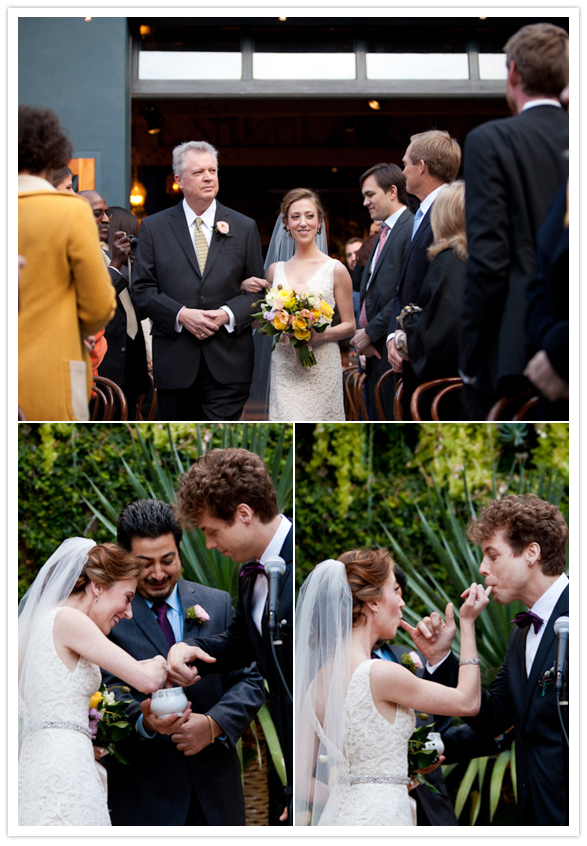 Event coordinator, wedding planner, dream machine: Yoleine Dumarsais of YellowBird Events / Photography: Brian Leahy / Flowers: Brown Paper Design / Alcohol: Silverlake wine / Food & servers: Heirloom LA / Cake, cake pops, desserts: Sweet and Sassy / Venue: Marvimon / Alterations, dress, everything: A Stitch in Time / Hair & makeup: Fiore / Groom’s suit: John Varvatos / Bow tie: Hermes