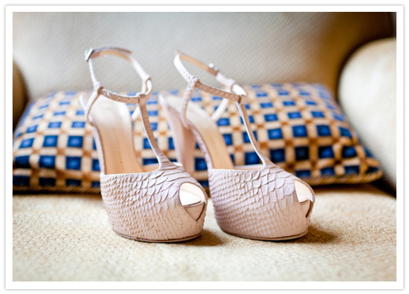 These pink snake skin stilettos paired with an all lace and French bustled gown may not have sounded like they’d mix well, but oh did they. Wow. And the dress? There’s a pretty great story behind it that you’ll hear all about from Allison in just a sec.