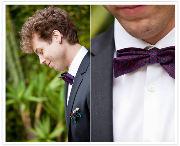 Lowell wore a boutonniere with black Pussywillows, plum blossoms, and african violets.