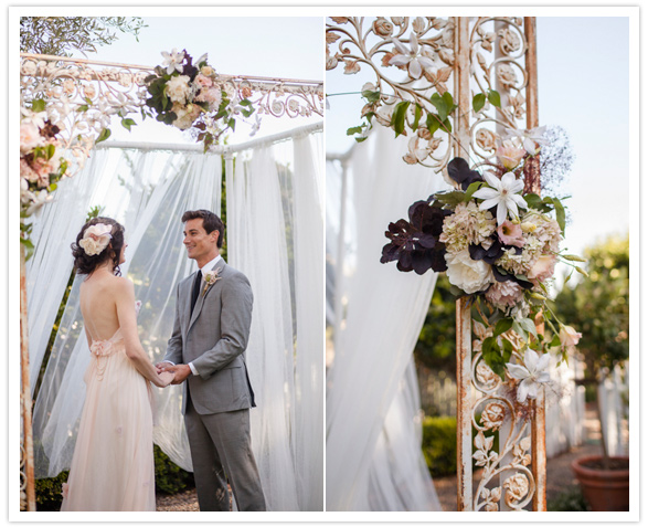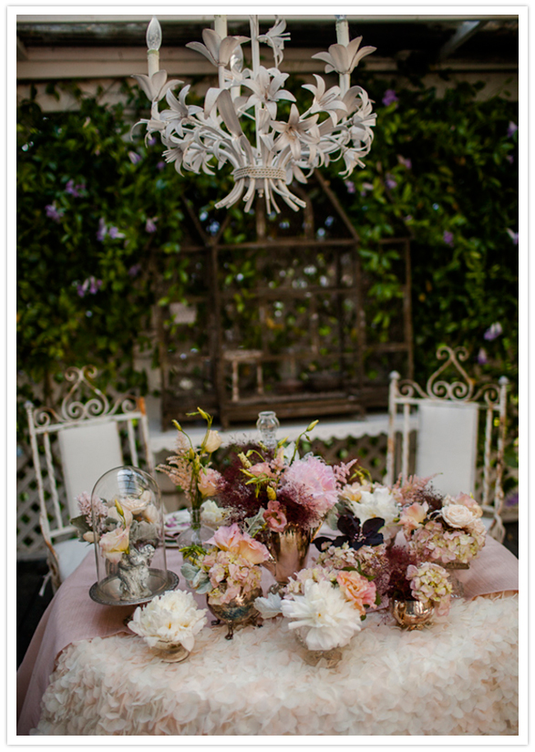 If you’ve ever visited the Dana Powers House in California you may have thought about creating a vintage style wedding with a hint of French romantic flair, kinda like what Davia Lee Events designed in this shoot. Vintage silver plates, crystal vases, ruffled & sequins linens, blush florals, and a flowing gown against an heirloom estate garden add a glamour and timeless touch. It’s all in the details, and this one has got a lot to inspire your Friday morning, so scroll on.