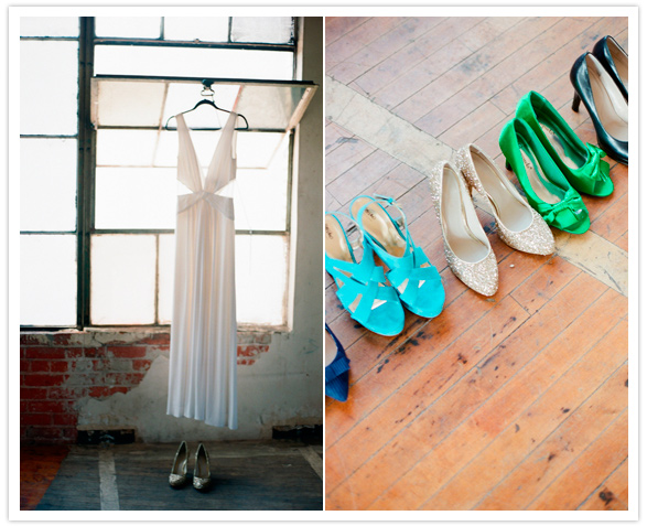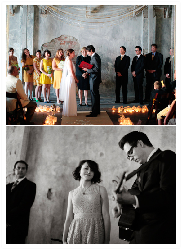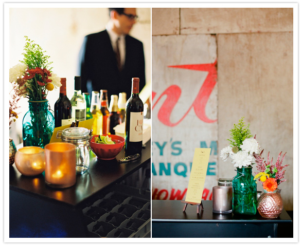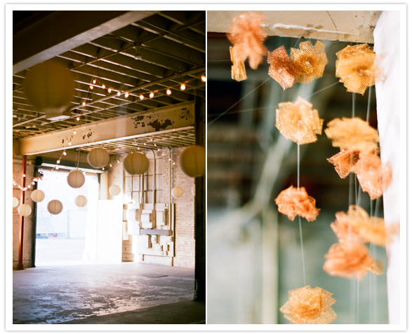 Ruby + Victor always said that if their wedding was a movie, it would be an indie film. She’s an actress and he is a writer/director, and both connected immediately with films they’ve loved. And as most true independent films are a labor of love, their wedding was as well. Both striving in their fields, they were on a very strict budget, but still wanted to make sure their loved ones had a great night with plenty to drink, eat and dance the night away. Going with a large, empty warehouse helped with costs and gave Ruby a blank canvas to go wild with diy projects.