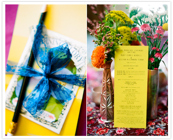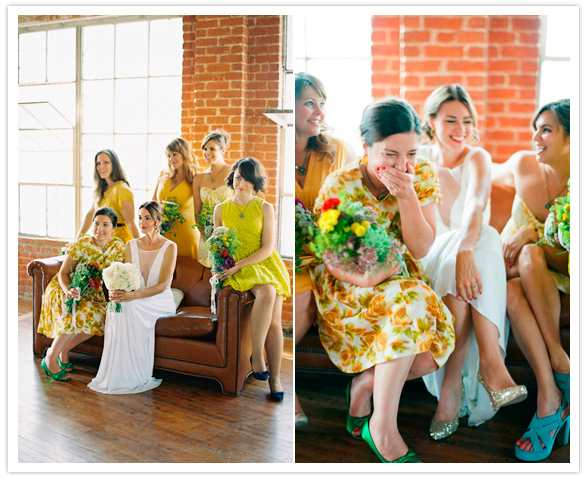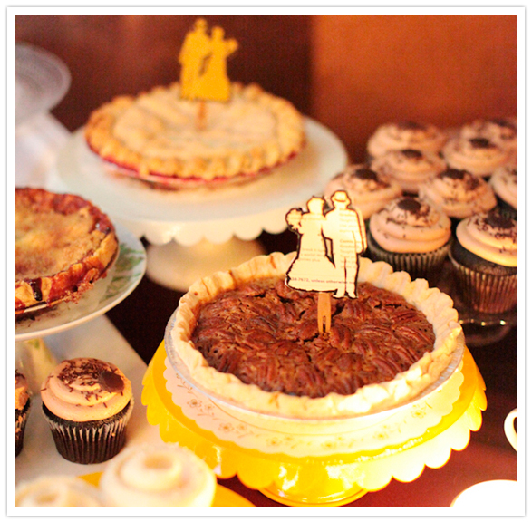 photography: Esther Sun Photo / videographer: Andrew Bowser, Stereo Waltz Films / venue: Poodle Parlor / make-up: Bianca Appice / hair: Emily Bowser / wedding co-ordinator: Breezy Delaney, Blissed Out Bride / flowers: Viri Sanchez / bride’s dress: bcbg / shoes: Nine West / bracelet: Una Mae’s Clothing / earrings and hair clip: Anthropologie / DJ: Jon Seltzer / photobooth photographer: Victoria Gloria / taco truck: Border Grill / pies: Jimenez Family Farm / pie toppers: Alicia Starr-Ryan / bunting: Mary Ryan / groom’s suit: DKNY / tie: Penguin / shoes: Ted Baker / bridesmaid dresses: chose their own yellow dresses