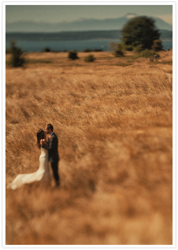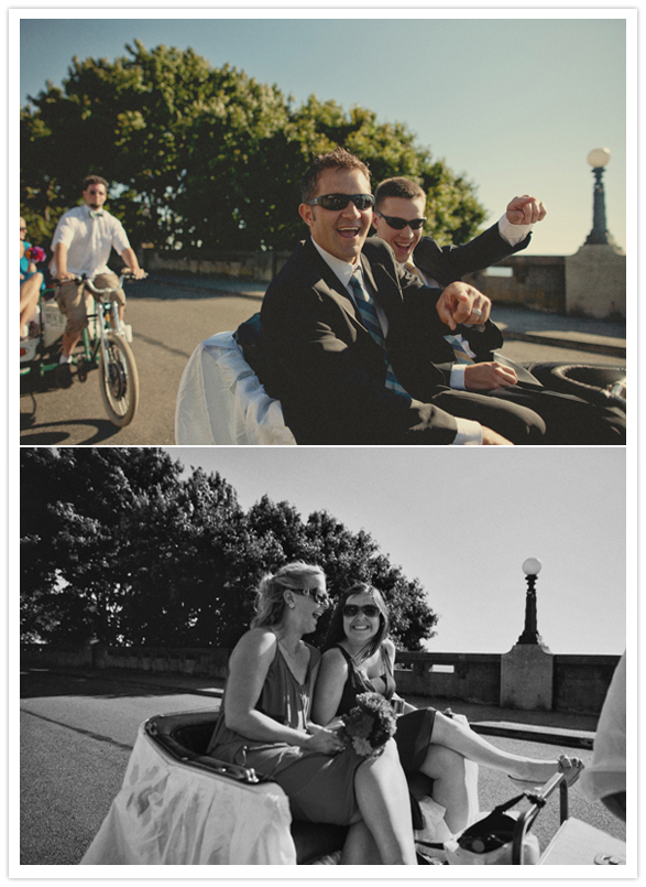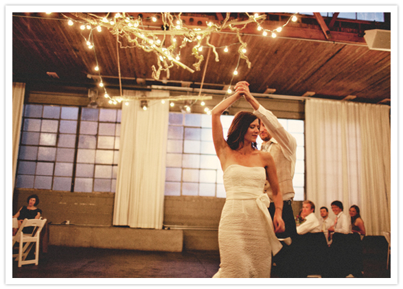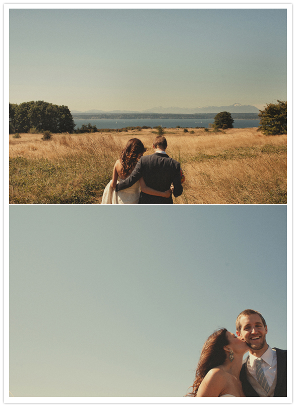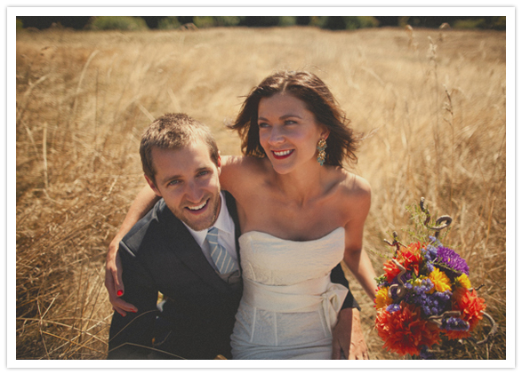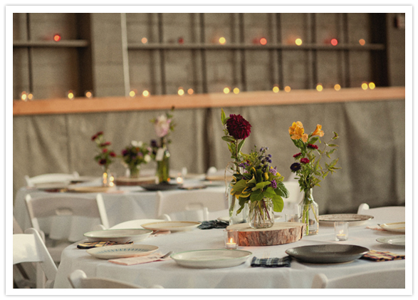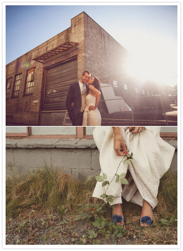 Ohh these two are a fun bunch. They had a caravan of pedicabs take their entire bridal party from the ceremony to the reception, had guests sit on blankets and picnic during their ceremony, gifted custom designed beer pints and vintage plates to guests, and finished the day off with a Seattle staple – Top Pot donuts. On top of that, Andrea sewed napkins, Tyson built the branch chandelier at their reception, and they sourced their food and flowers locally in an effort to keep their party as green as possible. We can only imagine how much fun One Love Photo had following these two lovebirds around.