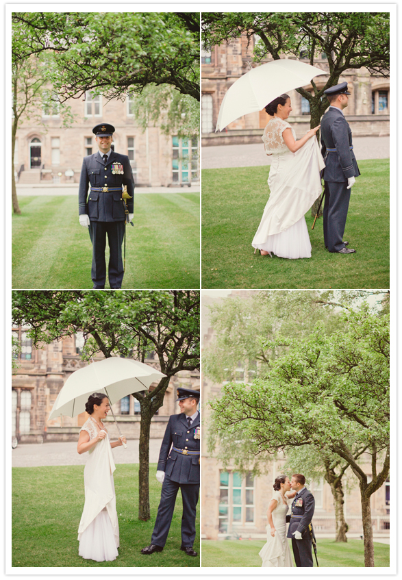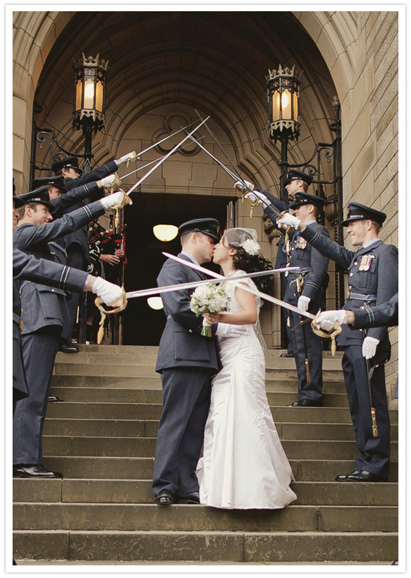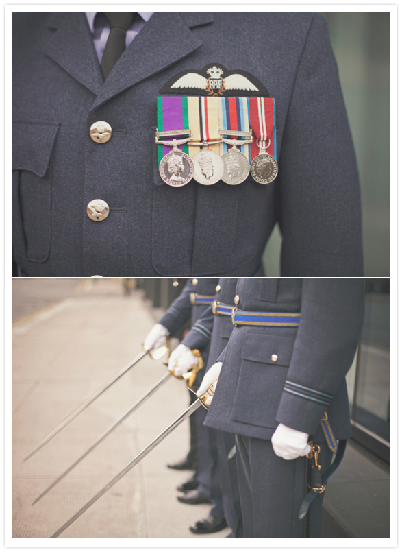 Given the wedding’s military presence, Royal Air Force and British Army uniforms abounded. Their ceremony started with a special dedication to British and American servicemen and women, and after the ceremony, Maria and Lee were presented to their guests by Lee’s sword party.