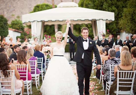 Photography: Annie McElwain / Event Design and Coordination: The Green Ribbon Party Planning Co. / Venue: Viceroy Palm Springs / Paper Goods: Posh Paperie / Flowers: Brown Paper Design / Cake and Desserts: Sweet and Saucy Shop / Linens: La Tavola / Lighting and Rentals: Signature Party Rentals / Music: California Sounds / Hair and Make-up: Fiore Beauty / Dress: Jim Hjelm / Shoes: Christian Louboutin / Bridesmaids’ Dresses: Bari Jay
