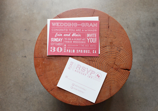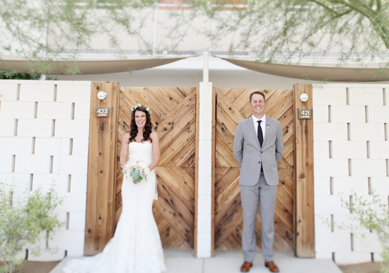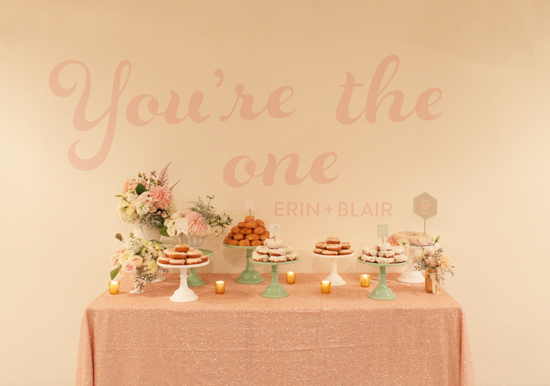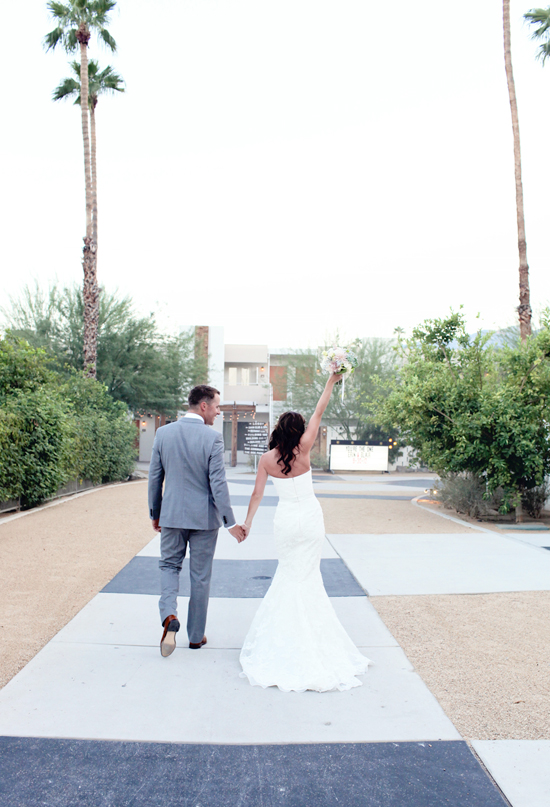Palm Springs weddings always feel like the best place to experiment with style. You can go totally bright and modern, keep with the muted color palette of the desert, or completely invent your own design. Erin + Blair would describe the style of their wedding as mid century modern inspired with soft, romantic elements and a bit playful (they used sequin tableclothes and donuts instead of a cake!). Being from Canada, this was their destination wedding. They even considered France at one point, however the Ace Hotel was a shoe-in. From the architecture and design to the menu at the King’s Highway restaurant the Ace was just so them.