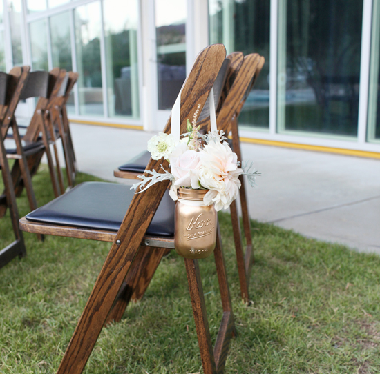 Erin walked down the aisle to “Moon River” sung by Audrey Hepburn, from the Breakfast at Tiffany’s soundtrack. And their first dance was to “You’re the One” by the Black Keys.