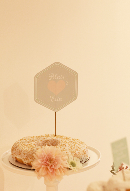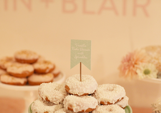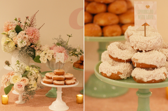 Event Design & Coordination: Beau & Arrow Events / Photographer: We Call This Love / Venue: Ace Hotel in Palm Springs / Florist + floral crown: Root 75 / Graphic Designer (paper elements & vinyl decal): Brightly Designed / Vintage couch & chair rentals: Found Rentals / Poufs, Cake Plates, Coffee Table rentals: Moss Vintage Rentals / Specialty linens: La Tavola Linens / Make Up Artist: Amy Clarke / Hair: Jen Kolhagen / Custom donuts & donut cake: VG Bakery / Bride’s dress: Enzoani / Shoes: Miu Miu / Veil: Jade Daniels / Jewelry: Leah Alexandra Designs / Wedding & engagement rings: Alexandria Rossoff / Belt: custom by Blush Bridal Boutique / Nail polish: Bubble Bath by OPI / Groom’s suit: J. Lindeberg, shirt by Omega / Shoes: Allen Edmonds / Pin: Love Medals / Wedding band: Tiffany & Co. / Tie: Altea / Bridesmaids: Rachel Pally purchased from Shopbop / Shoes: their own / Flower girl: dress from Gilt, shoes from Gap