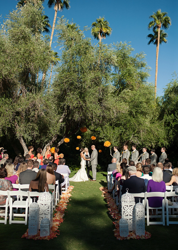 When you want a bright, fun and fresh wedding and aren’t afraid to have tangerine as the focal point of your decor, you play along with Amberly + Scott’s idea. They were initially against the idea of getting married at a hotel, but the Parker in Palm Springs is not just any hotel friends… it’s the best of all worlds. And as these two noticed, the energy of the space makes you want to have fun sipping drinks at the Lemonade Stand, relax by the pool, while still feeling upscale. ‘Tis the beauty of Palm Springs, no?