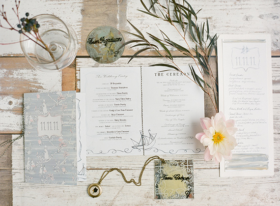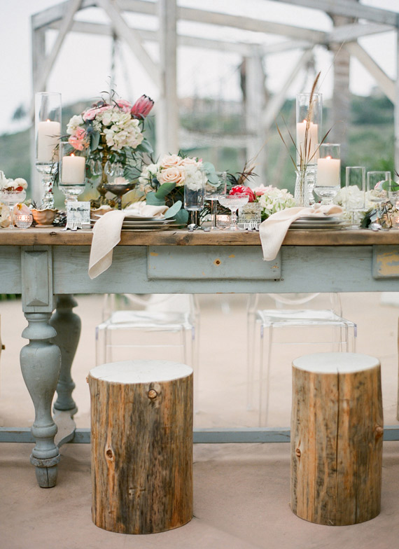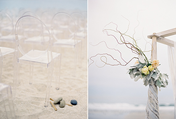 The wedding took place on the beaches of San Diego, but wasn’t your typical sunny San Diego beach wedding. In fact Courtnie even hoped for a foggy, overcast day to really create a unique and ethereal vibe. With a huge storm warning on its way, she got what she wanted and the shipwrecked vibe, a washed ashore, nautical, ethereal almost ghostly feel came to life with the help of good friend and coordinator, Carolyn Chen of The Special Day.