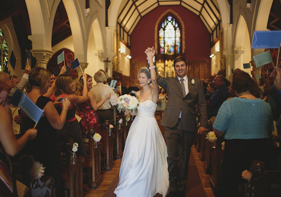 My favorite memory of the day was walking down the aisle with Joe right after we were married. I remember looking around and just smiling at how all of our friends and family were cheering and waving the flags I created. It was such a happy moment.