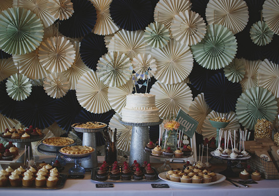 Yesterday we were all about tissue paper poms, and now today we’re really feeling the paper rosette look. Jennifer made an entire wall of them as the backdrop for their sweets table, and it’s pretty glorious. Growing up in West Michigan the water played a large role in their childhoods and summers together, so they choose a Lake house for its wrap around porch and panoramic views of the water. It was just the right amount of personal, creative and fun that they wanted with lots of DIY touches.