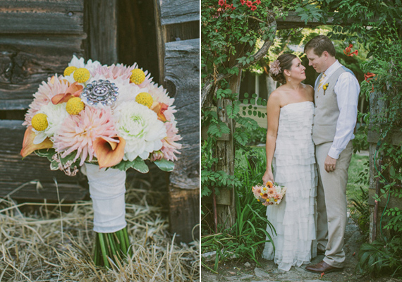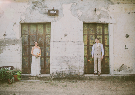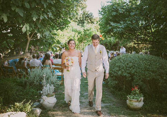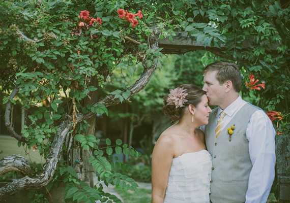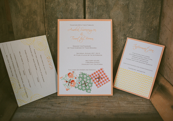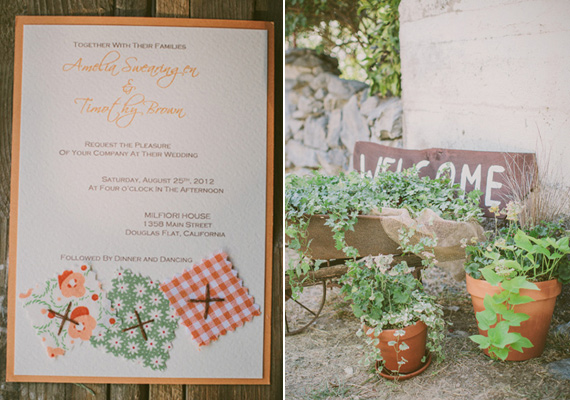 We love it when you can tell what kind of wedding a couple is going to have from their wedding invitations. In this case, Amy + Tim’s wedding, captured by Kris Holland, was a casual vintage wedding with a handmade feel (just like their cute DIY invitations). They also found history and charm in their wedding venue, the Milfori House, a restored farmhouse from the 1800’s that honored their deep family roots in the gold country of California. It was exactly what they’d been looking for, and with the help of family & friends, their rustic outdoor celebration was a hit.