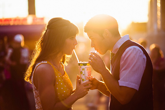 Hope you all had a fabulous Fourth yesterday! We figured plenty of you guys and gals would be taking advantage of the long weekend to shoot some engagement pics, so we thought we’d share some inspiration with this fun and quirky county fair engagement session from Look Here Photography. It’s pretty obvious that Rachel + Eric had a whirlwind of fun with this one—playing the games, riding all the rides, and of course, chowing down on all that delicious fair food.