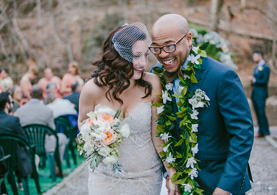Woodsy weddings are way romantic, yes? There’s something about being tucked away in the woods with all your loved ones that just makes us feel all warm and cuddly inside. Add in a babbling creek and Portia + Desmond’s vintage-meets-French-chateau-meets-shabby-chic style, and you have a wedding we can really get behind. We’re also digging the dreamy pastel tones captured oh-so-beautifully by Emily Delamater. Swoon.