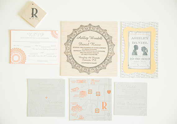 Remember that elegant art museum wedding we shared on Monday? Yeah, we’re right back at The Ringling Museum of Art for today’s bash and all we can say is it’s fast becoming one of our favorite venues. Ashley + Daniel chose the spot because they met at art school and wanted to celebrate their beginnings as a couple. It also happens to be Ashley’s very favorite place in her Florida hometown. The wedding is a total masterpiece of course, from the still life-worthy tablescapes right down to the invitation suite. Oh, and did we mention that Ashley made all that good stuff herself? Thank you 1313 Photography for sharing the beautiful pics with us!